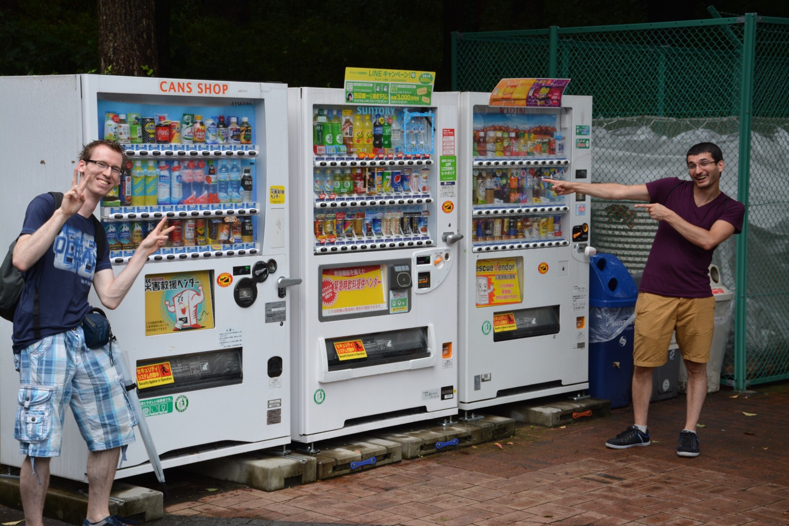Een ander leuk dingetje in Japan is de hoeveelheid vending machines (frisdrankautomaten). Hier kun je behalve frisdrank ook paraplu’s, koffie, noodles kopen. Nu zou je zeggen dat dat niet zo raar is, omdat dat in Nederland meestal ook wel kan. Het verschil is dat er hier echt veel staan! In een straat staan er vaak al een stuk of 5; dan spreek je notabene over kleine straten. Op elk perron staan er ook minimaal 6, zelf kleine stations. Om een beeld te geven van deze vending machines hebben we een paar foto’s genomen met deze automaten. Het eerste drankje dat we uit zo’n apparaat haalden was Pocari Sweat! Dit drankje is overheerlijk. Het smaakt als aquarius, maar dan verfrissender en minder kunstmatig. Sinds die eerste keer zijn we helemaal verkocht. We zijn opzoek gegaan naar de goedkoopste Pocari Sweat uit een automaat. Momenteel is de goedkoopste ¥100 (~€ 0,75). Je ziet het merk ook overal terug. Op attracties, prullenbakken, auto’s en bussen.