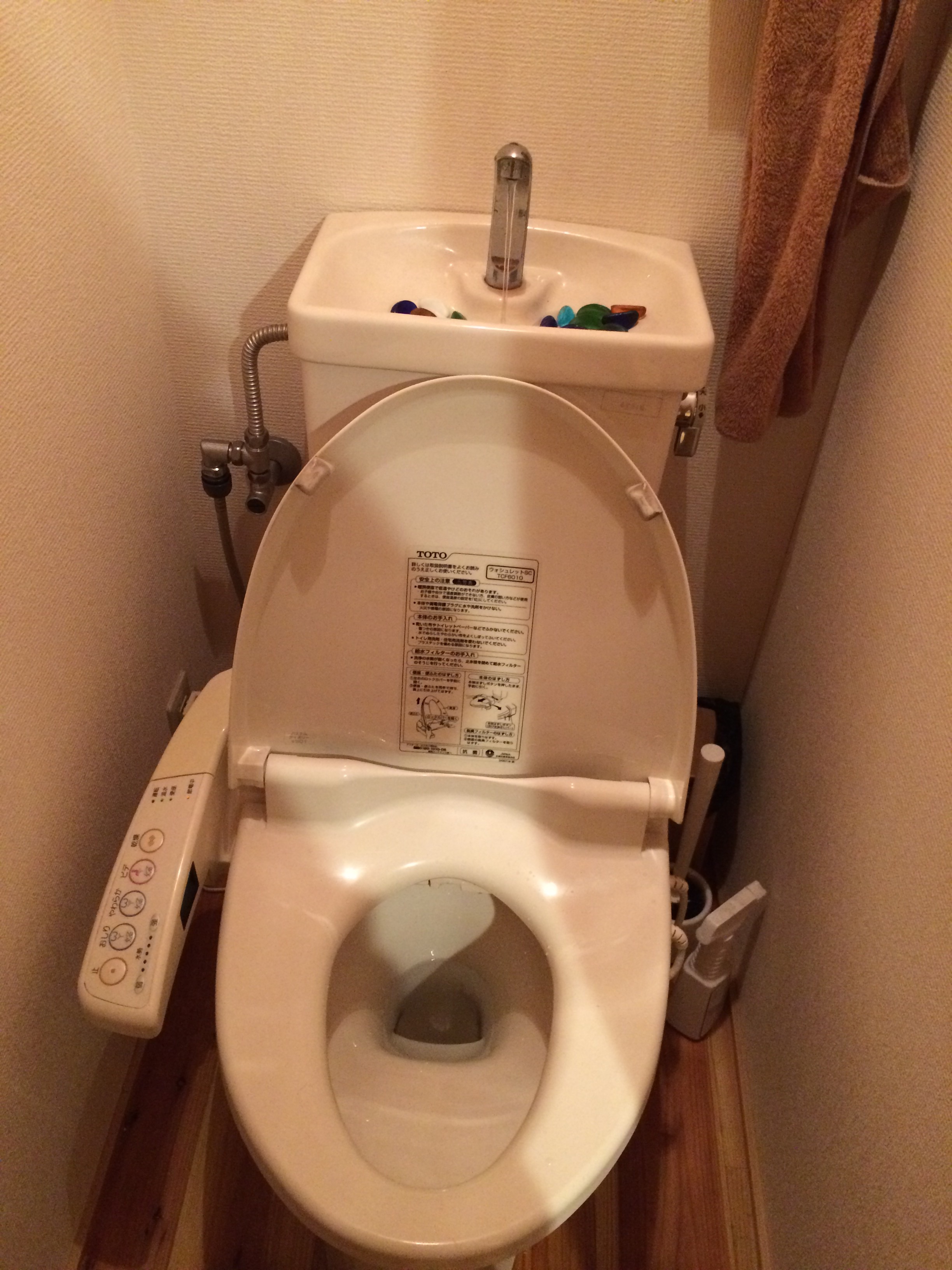 Dag 2 in Kyoto breekt aan. We hebben onze eerste nacht achter de rug in Santana Guesthouse Kyoto. Het is een kleine, maar erg leuke plek om te verblijven. Het hostel heeft ruimte voor 12 personen (4 op elke kamer). Heeft twee douches en twee wc’s. Het leuke aan deze wc’s is, dat het geen wc is zoals in Nederland. Het is een geüpgrade versie. Aan de zijkant van de wc zitten allemaal knopjes. Als je bent wezen poepen, druk je op een van die knopjes en wordt je kont schoongemaakt; er spuit dan een straal(tje) warm water in je kont. Als je denkt klaar te zijn druk je op de stop knop. Verrassend genoeg maakt hij erg goed schoon. Als je klaar bent heb je nog zoiets moois. Op het reservoir zit namelijk een kraantje. Je kunt dus eerst je handen wassen voor het water in het reservoir komt; mooie manier om water te besparen zeg ik!