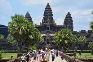 In het vorige verhaal ben ik geëindigd bij de killing fields. Een indrukwekkend, en zeker trieste, activiteit. Na het bezoek zijn we terug gegaan naar ons hostel om vanuit daar de bus te nemen naar Siem Reap. Na een busrit van ongeveer 6 uur, kwamen we aan in Siem Reap. Met een inwoners aantal van ongeveer 140.000 inwoners, mag het zichzelf de derde stad van Cambodja noemen. Siem Reap is voor veel toeristen een trekpleister. Dit is niet omdat het een mooie stad is met veel bezienswaardigheden. Dit is voornamelijk omdat een van de mooiste bezienswaardigheden van Azië hier te vinden is, Angkor. Angkor was vroeger de hoofdstad van het Khmerrijk. Tegenwoordig bestaat het gebied alleen nog uit ruïnes. Maar voordat we naar Angkor zouden gaan, gingen we als eerst (hoe kan het ook anders) naar het Hard Rock cafe in Siem Reap.