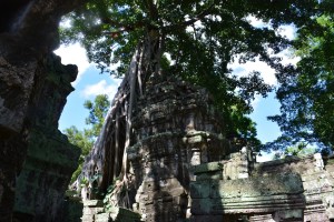 Na Angkor Wat zijn we nog naar Ta Prohm gereden. Deze tempel was nog meer een ruïne dan Angkor Wat. Overal lagen stapels stenen van ingestorte gebouwen. Er waren ondertussen ook mensen bezig om de tempels weer te herstellen. De tempel is onder andere aangetast door boomwortels. In en om de tempels bevonden zich dan ook veel enorme bomen. Deze tempel was net iets anders dan Angkor Wat en daarmee dan ook erg gaaf om te zien. Overal door de tempel lopen gangen die kris kras door elkaar gaan. Gelukkig stonden er overal bordjes die aangaven waar je heen moest, was dit niet het geval, dan was ik waarschijnlijk al snel verdwaald geraakt. Na deze tempel besloten we dat het genoeg was. We zweetten ons kapot. Het was namelijk net als gister echt bloedheet vandaag. Zonnebrand smeren hielp dan ook bijna niet, omdat het gewoonweg niet bleef zitten. We vermoedden ook dat de andere tempels veel zouden lijken op degene die we al gezien hadden. We besloten daarom om maar terug te gaan naar het hostel.