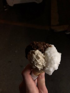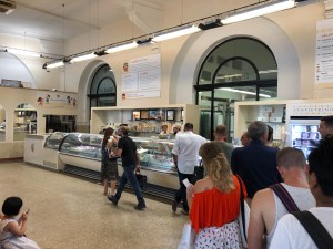 Daar aangekomen ga je eerst naar de kassa. Voor diegene die bekend zijn met Mario zullen begrijpen wat ik bedoel als er een soort Luigi achter de kassa zat. Niet alleen met zijn uiterlijk, maar ook zijn manier van praten. Zijn typisch Italiaans-Engels accent kan niet missen. Voor slechts € 2 eet je al een ijsje bij Fassi. Je krijgt keuze uit een enorme hoeveelheid smaken, waarvan je er 3 kiest. Ik hield het maar simpel, aangezien ze het ijs vlot wilden scheppen. De combinatie werd pistache met koffie en vanille. Het ijs wordt hier niet geschept met zo’n knijper als in Nederland. Ze gebruiken een platte lepel en smeren een royale hoeveelheid ijs over de hoorn. Als ik in Duiven ijs eet haal je dit bij IJs&zo (Lathum), IJs&more (Diem) of La Calamita (Duiven). Ik kan met waarheid zeggen dat geen van deze drie ook maar een beetje in de buurt komt van dit ijs. Dit ijs was zo romig en ijskoud (joh, het is ijs, duh…), maar dan weer niet te koud. Nadat ik het ijs op had, wilde ik rustig een filmpje kijken. Dit lukte echter niet zo goed, aangezien ik iedere keer in slaap viel 😅… Ben dus maar teruggegaan naar m’n hostel om wat te slapen.