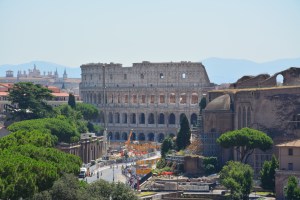 Een klein stukje doorlopen en ik vond Momento a Vittorio Emanuelle II. Dit is een monument gebouwd ter ere van de vereniging van Italië. In het monument is een museum te vinden en je kan met een lift naar boven het gebouw op. Ik ben wel even door het gebouw gelopen, maar heb verder geen extra activiteiten gedaan. Vond het een te duur en twee de moeite niet waard. Ben na het Momento doorgelopen naar de daadwerkelijke ingang van Palentino Hill en Forum Romano. Heb hier een toegangskaart gekocht voor het Colosseum en ben wat gaan eten. Je zou misschien denken dat alleen reizen saai is en je misschien aanspraak mist. Dat is misschien juist ook weer het voordeel. Juist omdat ik alleen ben, heb ik aanspraak. Heb tijdens mijn lunch bijvoorbeeld gezellig gekletst met 2 Amerikanen die ook op vakantie waren. Na mijn lunch, die overigens veel te duur was voor wat je kreeg, ben ik naar het Colosseum gegaan. Hier kwam ik een voor de meeste vakantiegangers bekend fenomeen tegen.