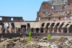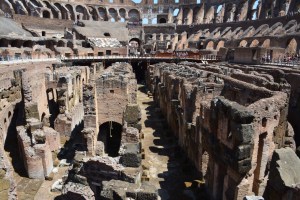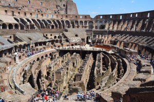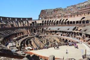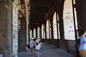 En zo gaan we door het Colosseum in. Een kaartje kost €12 en is zeker de moeite waard. Het Colosseum is een indrukwekkend gebouw. Het wordt nog indrukwekkender als je erbij nagaat dat het voltooid is in 80 n. Chr. Er wordt gezegd dat het gebouw plaats bood aan 50.000 tot 80.000 toeschouwers. Een groot deel van het gebouw is al vervallen, maar je kunt je wanneer je rondloopt best indenken hoe het eruit gezien zal hebben. Nog steeds is het Colosseum het grootste amfitheater ooit gebouwd en behoort het tot de lijst van de nieuwe 7 wereldwonderen.