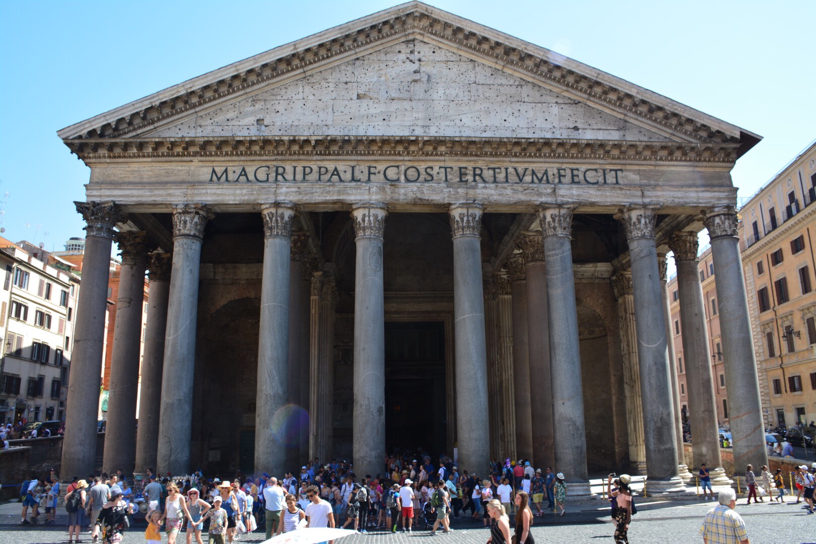 Na een bezoek aan het Colosseum, ging ik door naar het Pantheon. Vroeger was dit gebouw een enorme tempel. Tegenwoordig wordt het gebruikt als kerk. Het gebouw is bijzonder, omdat het tot op de dag van vandaag nog steeds de grootste betonnen koepel ter wereld is. Dit zonder restauraties. Dat is een flinke tijd voor een gebouw van 70 n. Chr. Het plein voor het Pantheon is ook leuk om te bezoeken. In de verschillende zijstraatjes vind je bijvoorbeeld leuke koffie tentjes. Hier koop je bij de kassa je koffie. Je gaat naar de bar, geeft je bon af en krijgt het geserveerd. Aan de bar drink je (in mijn geval) je espresso en cappuccino op en vertrek je daarna weer. Ook kan mijn eerste ijsje van de dag niet uitblijven. Ditmaal had ik karamel en kaneel. Ook deze smaakte weer voortreffelijk!