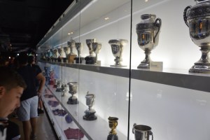 Met een goed gevulde maag was het nog maar 3 minuten lopen naar de volgende activiteit. Dit was een bezoek aan Camp Nou. Voor diegene die het niet weten, het stadion waar FC Barcelona voetbalt. Echter is deze club meer dan alleen voetbal. Iets waar ik in de Barcelona Experience achter kwam. Ze hebben ook een hockey, volleybal, basketbal, atletiek en nog een paar. Daarnaast kom je natuurlijk overal de naam Johan Cruijf tegen. Er zijn dan ook 2 speciale ruimtes in de tour. Een ruimte voor Messi en de andere voor Cruijf. Dit laatste kan ik dan ook linken aan Mes Que Un Club (meer dan een club). Voor de Catalanen is FC Barcelona (o.a. door Johan Cruijf) meer dan een club. Johan Cruijff bracht na een lange slechte periode voor FC Barcelona de glorie van de club namelijk terug. Eerst deed hij dit als voetballer en later als trainer. Als trainer introduceerde hij ook de huidige speelstijl, het bekende tiki-taka voetbal. Hoewel Guardiola hier vaak credit voor kreeg, deed hij hier afstand van. Hij verwees hiervoor ook naar Cruijf.