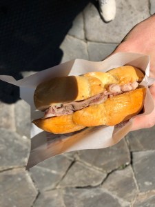 De rest van de dag niet heel veel bijzonders gedaan. Een beetje rondgelopen en genoten van de stad. Wel nog een typisch Florence lunch geprobeerd, Lampredetto. Dit is een broodje gedipt in een bouillon, besmeerd met een kruiden sausje en belegd met abomasum. Dit laatste staat beter bekend als de vierde koeienmaag. Dit is in stukken gesneden en wordt op je broodje gedaan. Een echte lekkernij staat op internet geschreven. Ik was ongeveer op de helft toen ik het niet meer weg kreeg en het heb weggegooid. Ik weet niet of dit kwam door het feit dat het een koeienmaag was wat ik at of gewoon omdat de textuur heel raar was. Ik denk dat het het meest in de buurt komt van vlees wat erg vettig is. Deze lekkernij mogen ze van mij best in Florence houden. Al met al was Florence wel een mooie stad. Het is echter wel een stad waar niet heel veel te doen is. Misschien als je veel op pleintjes gaat zitten om wat te drinken of met z’n tweeën een romantische reis wil hebben, is het wel leuk. Voor mij als backpacker was er niet heel veel te doen.