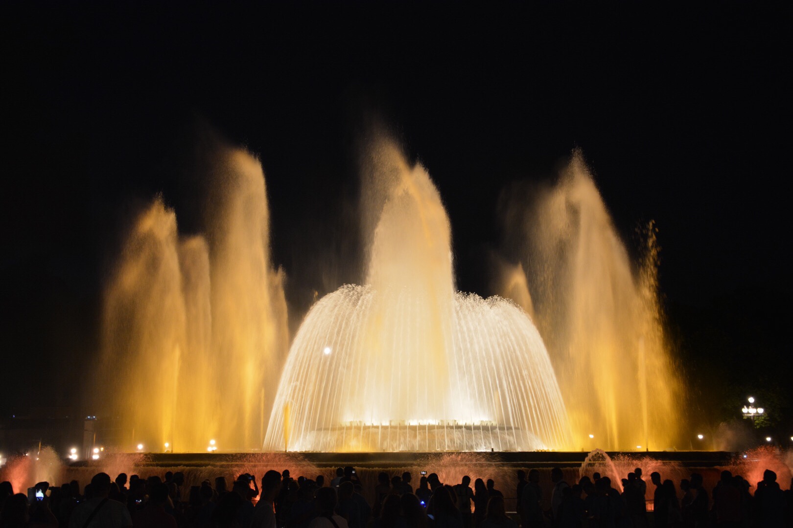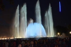 Aangezien ik gister best veel geld heb uitgegeven aan een (voor mij als backpacker) te duur restaurant en de tour bij Camp Nou, heb ik het vandaag rustiger aan gedaan met mijn uitgaven. Mijn ontbijt, lunch en avond eten bestond dan ook uit broodjes van de lidl belegd met chorizo. Op deze manier at ik toch een beetje Spaans. De laatste activiteit van vandaag bevindt zich bij het oude Olympisch dorp, Font Magica (magische fontein). Deze fontein is in 1929 gebouwd voor de wereldtentoonstelling in Barcelona. Vervolgens is de fontein slecht onderhouden en in verwaarlozing geraakt. In 1992 is de fontein echter gerestaureerd. Dit is namelijk het jaar dat de Olympische spelen werden gehouden in Barcelona. Tegenwoordig komen massa’s toeristen op de fontein af. Dit is vooral ’s avonds. Aangezien er ’s avonds een show wordt gegeven met de fontein. Dit wordt gedaan met muziek, felle kleuren en water dat op verschillende manieren omhoog spuit. Ondanks de drukte, is het mij wel gelukt een goed plekje te bemachtigen om even te genieten van de fontein.