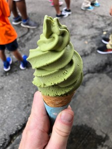 Na een tour van ongeveer een uur, liepen we verder naar Bukchon Hanok Village. Dit is een gebied (dorp) in de stad waar alle gebouwen nog zijn gebouwd in traditionele bouwstijlen. Dit betekent veel huizen van hout, met typisch gerafelde daken. Naar mijn idee werd het gebied ook vooral gekenmerkt door de lange stijle straten. Naast de oude gebouwen, waren er (meer onderin) souvenirshops en eetgelegenheden. Prima plek voor een ijsje met groene thee smaak. Het zag er allemaal wel leuk uit, maar was verder niet heel bijzonder.
