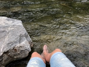 Wanneer je Gwangjong Market uitloopt, loop je bijna direct tegen de volgende activiteit aan: een bezoek aan de Cheonggyecheon beek. Deze beek van (volgens mij) 5,4km stroomt dwars door het centrum van Seoul. We zochten een plekje langs de kant van de rivier, deden de schoenen uit en hebben heerlijk met onze voeten in het koele water gezeten. Na een lange dag met veel wandelen, is zoiets echt heerlijk. Na een tijdje zitten, zijn we nog doorgelopen naar het begin van de beek. Dit zou zijn bij een kleine waterval waar ’s avonds allemaal lampen oplichten. In tegenstelling tot de verschillende foto’s die ik op internet gevonden had, viel het in het echt wel een beetje tegen. Het leek of veel van de lampen kapot waren…