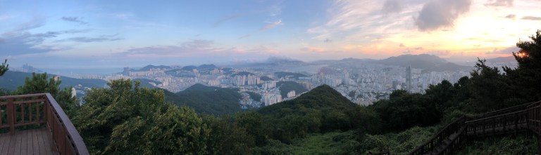 Uiteindelijk begonnen we in Igidae Coastal Walk. Dit is een looptocht langs de kust van Busan, waarbij je mooi uitzicht hebt op de zee en de kliffen. We dachten dat het een wat makkelijker looppad zou zijn, maar dit viel vies tegen. Met de nodige inspanning bereikten we toch mooie plekken om te genieten van het uitzicht. Daarbij meegenomen dat we de nodige calorieën verbrandden is dan weer positief. Uiteindelijk kwamen we boven nog op een uitzichtpunt uit waar we iets bijzonders troffen. Een gratis verrekijker. Aangezien je meestal voor die dingen moet betalen. Toch even leuk om de overkant te bekijken.