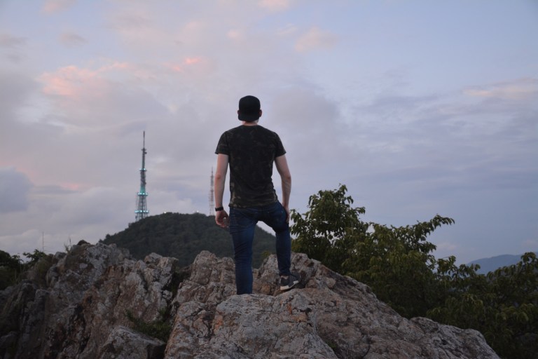 Met een volle maag, maakten we nog een laatste klim. De berg was zo’n 550m hoog, maar wij stoppen ergens rond de 460m. Hier had je al een prachtig uitzicht over de stad en omgeving. Aangezien de zon al onder ging en de top nog bijna een uur lopen was, besloten we weer terug te lopen. Met het laatste licht liepen we het steilere gedeelte af om vervolgens het laatste vlakkere stuk met de zaklamp van de telefoon weer beneden aankwamen.