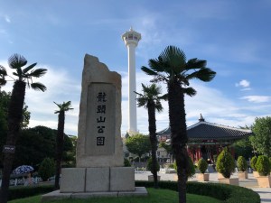 De volgende activiteit was bij Busan tower. Hier aangekomen zijn we de toren uiteindelijk niet ingegaan. We vonden het namelijk te duur voor wat het waard was. En eerlijk gezegd krijgen we hier waarschijnlijk geen mooier uitzicht dan die van gisteren. We zijn dus op het dakterras gaan zitten en hebben heerlijk genoten van het laatste beetje zon die dag met een koud biertje erbij. Na de toren gingen we eten. Busan staat bekend om de goede bibimbap, dus dat moesten we natuurlijk proberen.
