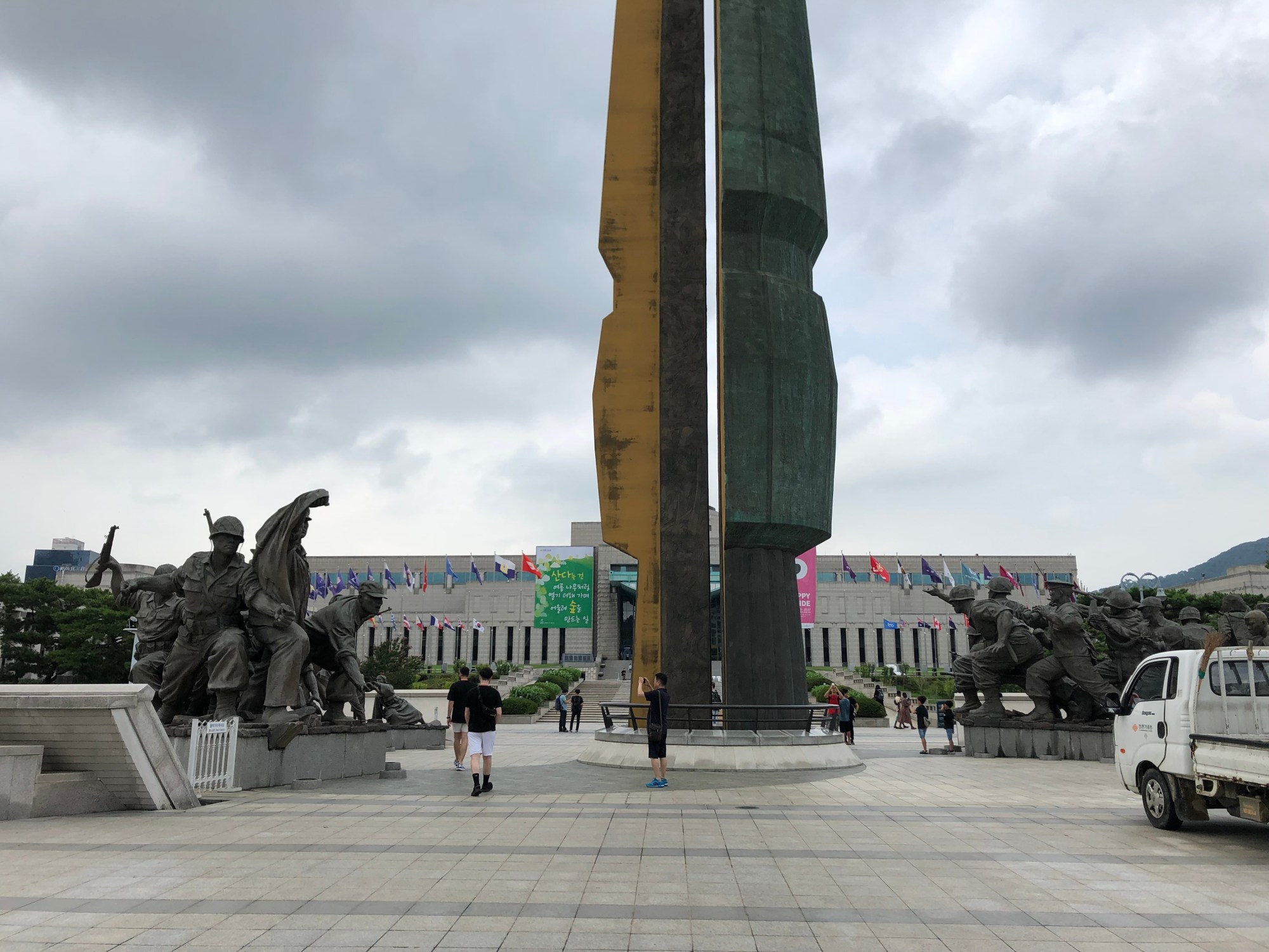 Voor vandaag de dag namen we de metro naar Samgakji. Vanuit hier was het een klein stukje lopen naar het War Memorial Museum. Dit nationale museum is niet alleen gericht op de Koreaanse oorlog, maar de volledige Koreaanse geschiedenis. Althans, Koreaans… Dit is de naam die de westerse landen eraan gaven. De Koreanen noemden hun land vroeger Joseon. Bij het bezoeken van het museum wist ik dit nog niet. Wel werd op de informatieborden constant gerefereerd aan Joseon. Achteraf snap ik in ieder geval wat ze hiermee bedoelden. De geschiedenis bestaat vooral uit oorlogen tussen districten en een paar overnames door Japan.