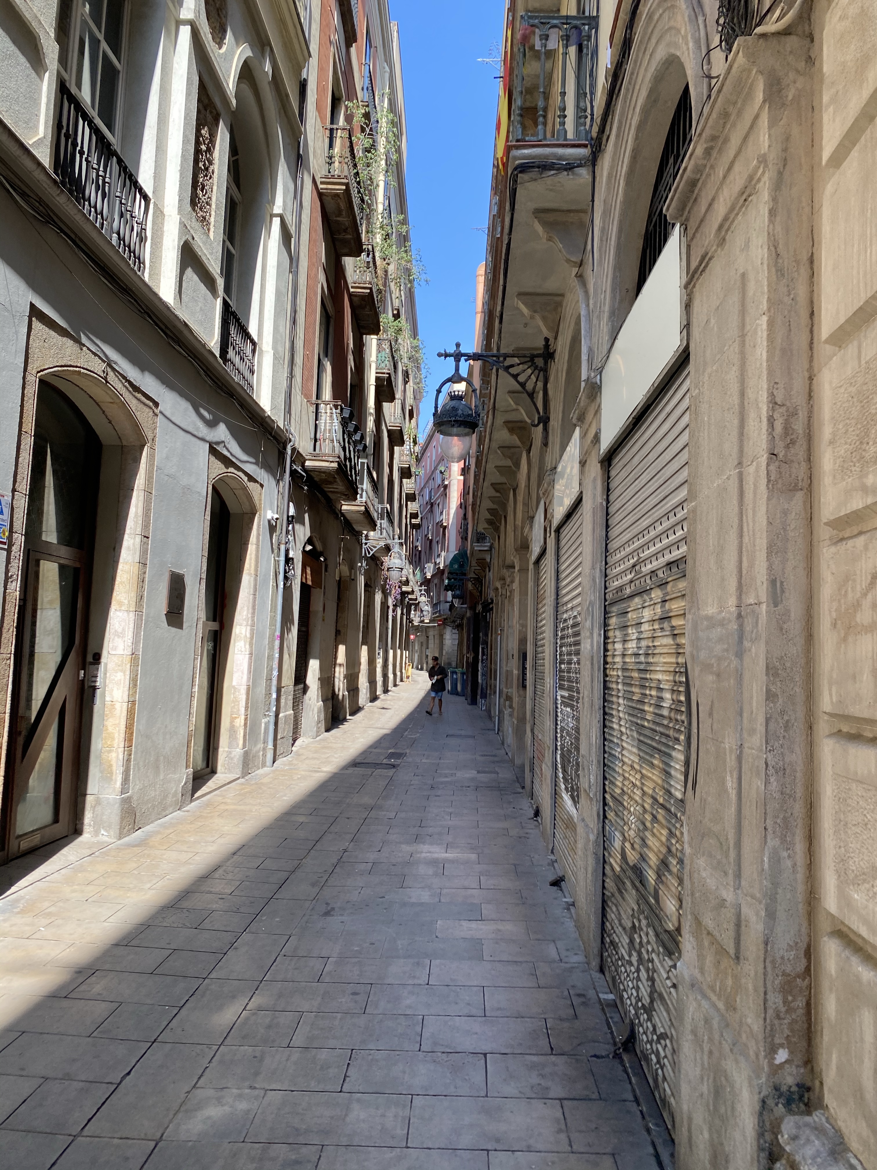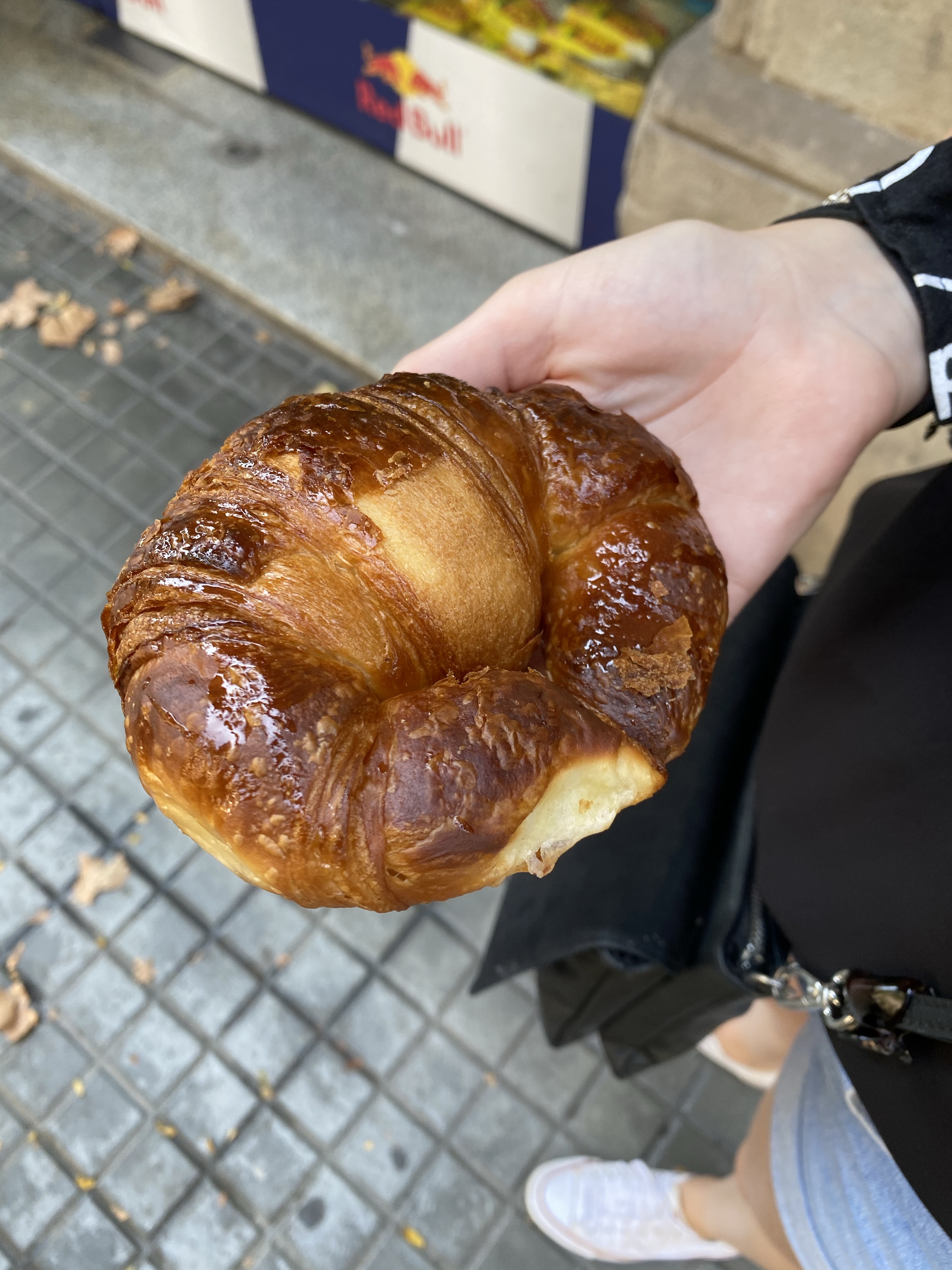 En dag 2 in Barcelona breekt alweer aan. Al snel merkten we wat voor een dag het is. Het is namelijk zondag. Dit betekent dat veel winkels gesloten zijn… We wilden eigenlijk een ontbijt halen bij de lidl, maar deze was gesloten. Dan toch maar een bakkerij/cafeetje opzoeken. Wellicht hebben ze bij de volgende wel xuixo. Helaas ook deze keer geen succes. Dan maar weer 2 croissants en een cappuccino. De croissants waren erg lekker. Ze deden mij denken aan de croissants die wij vroeger altijd aten op de camping. Zacht van binnen en met een dunne laag honing (denk ik) op de bovenkant gesmeerd. De cappuccino daarentegen… Geen idee wat het moest voorstellen, maar het had niks met cappuccino te maken. Ze hadden het overladen met cacao. Daarnaast zat er meer melk dan koffie in. Het was in ieder geval niet te pruimen. Maar het kan altijd erger. Je kan ook thee bestellen zoals Robin deed. Althans, thee… Ze nam een slok en zei meteen gadverdamme! Ik dacht dat het wel mee zou vallen. Ik nam een slok en jeetje. Ik weet niet eens wat het was. Het was niet volledig vloeibaar, maar leek ietsjes dikker en smaakte naar zeewater ofzo. Ik denk dat dit de beste omschrijving is. Dit heeft Robin dus, na snel een slok water, laten staan.