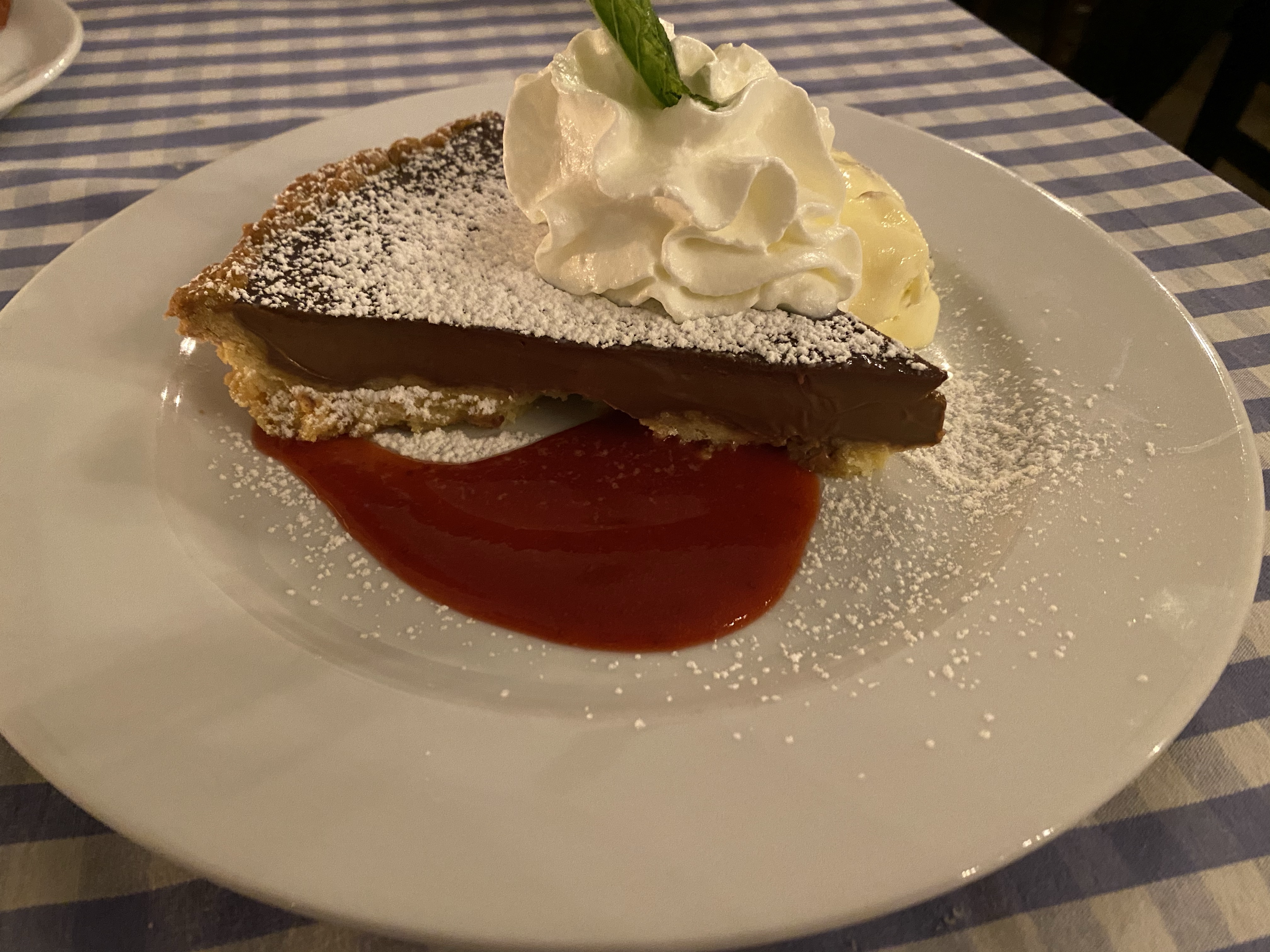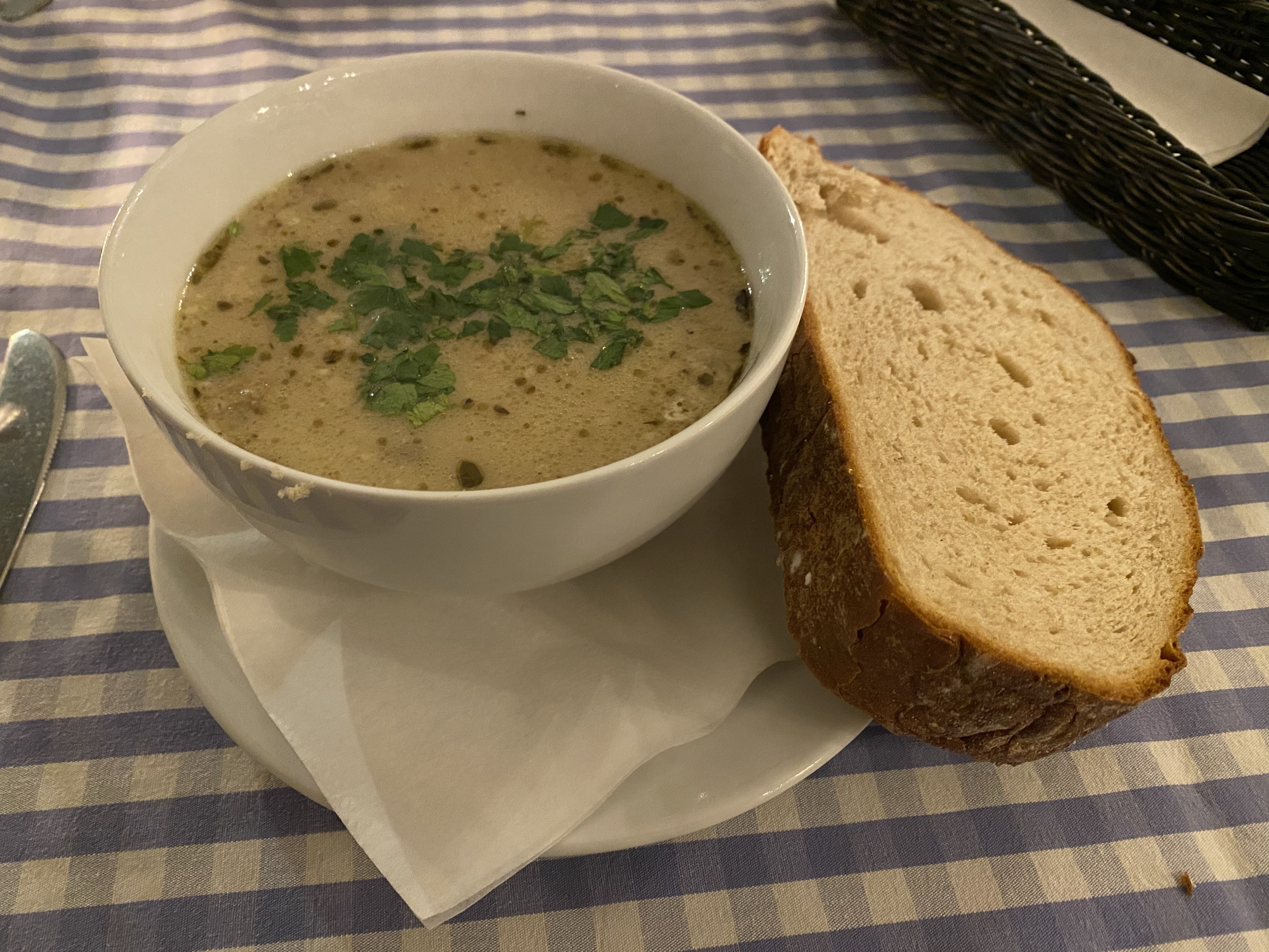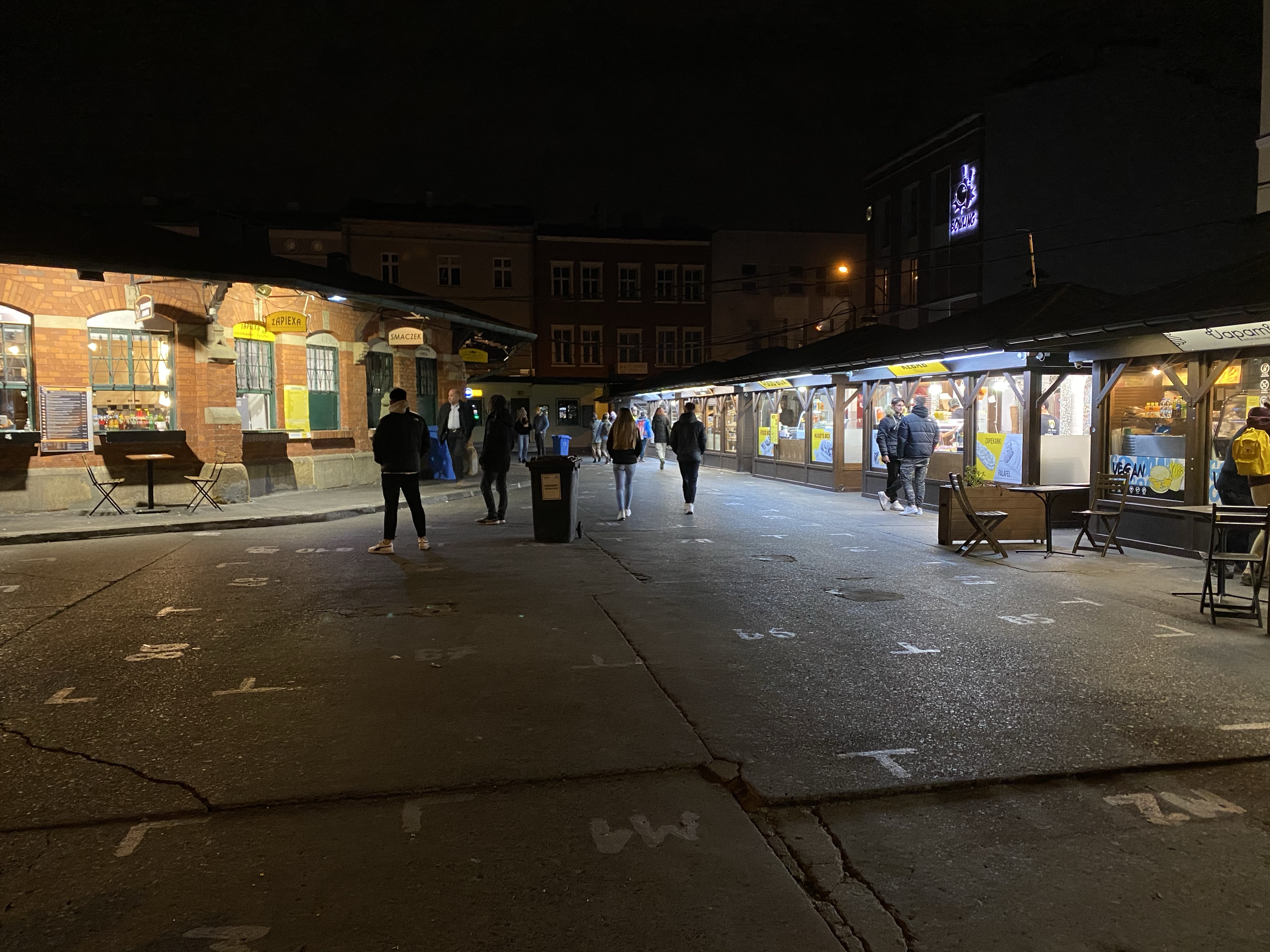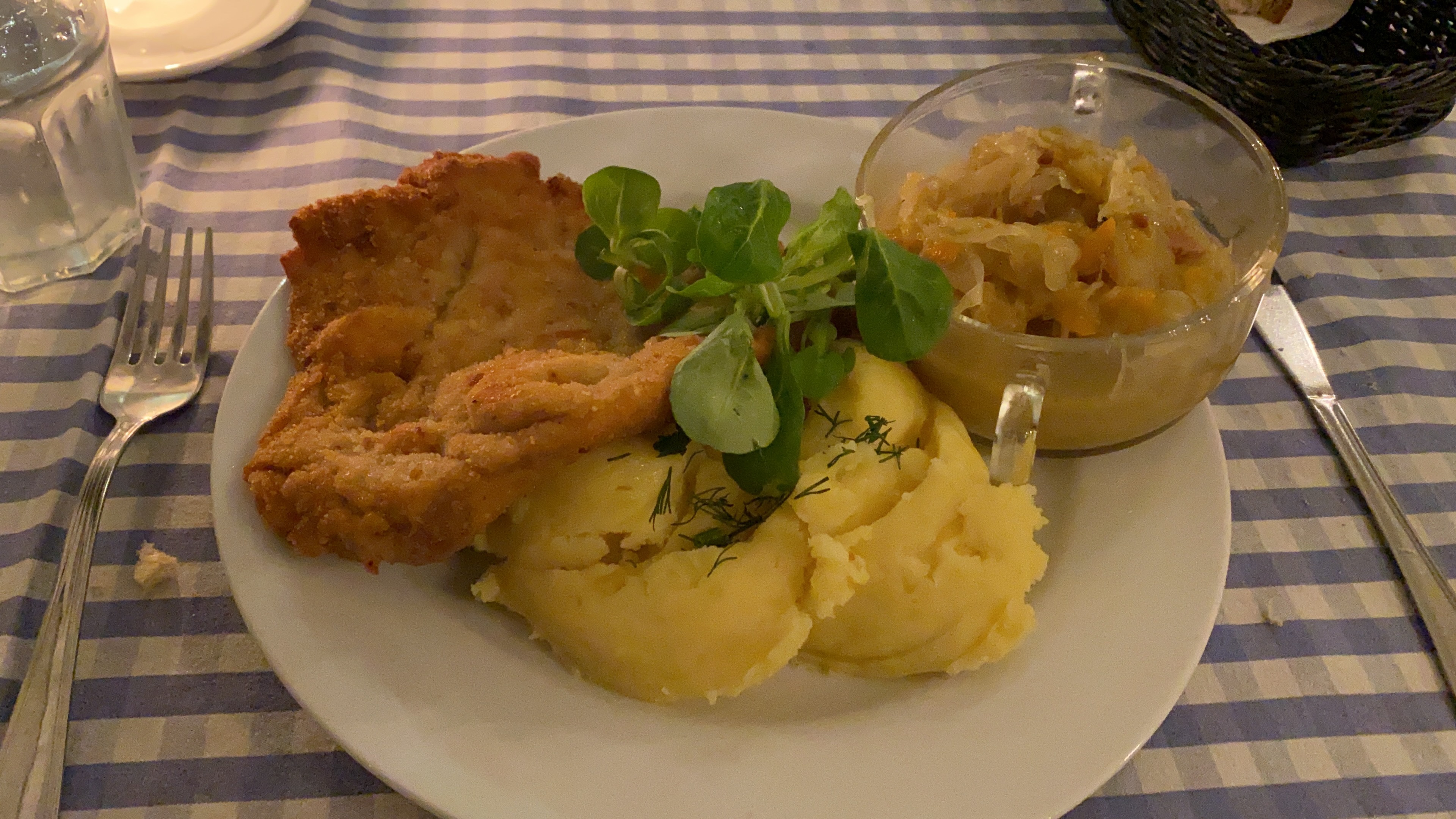 Uiteindelijk zijn we met de trein teruggegaan naar Krakau. Dit was een stuk prettiger reizen dan met de overvolle bus. Daarnaast kostte deze 1,5 uur durende treinrit slechts € 2,25. Daar kan de NS nog een puntje aan zuigen. Voor dat geld kan ik niet eens een enkeltje naar Arnhem krijgen… Het was nu alleen nog tijd om wat te gaan eten. Wederom bracht dit ons naar het Joods kwartier. We kwamen weer in de buurt van Plac Nowy. Dit plein ziet er ‘s avonds trouwens een stuk sfeervoller uit! We hebben gegeten bij restaurant Polska. Dit restaurant serveert traditionele Poolse gerechten. Wij bestelden een traditionele soep met brood. De soup had iets weg van een aspergesoep. Het was gevuld met een gekookt ei en worst. Het ei gaf ik aan m’n vader, maar de rest was heerlijk. Vooral lekker met het brood in de soep dippen. Als hoofdgerecht hadden we pork loin. Ook dit is een traditioneel Pools gerecht. Het was gewoon een schnitzel met aardappelpuree en ingelegde kool. Dit laatste had wel wat weg van zuurkool, maar dan met meer kruiden. Alles samen was het een lekker gerecht. Vooral de kool maakte het compleet. Dit was lekker op het brood, bij de aardappel en zelfs met de schnitzel. We sloten uiteindelijk af met een stuk chocolade taart en een bol ijs. Dit was niets bijzonders.