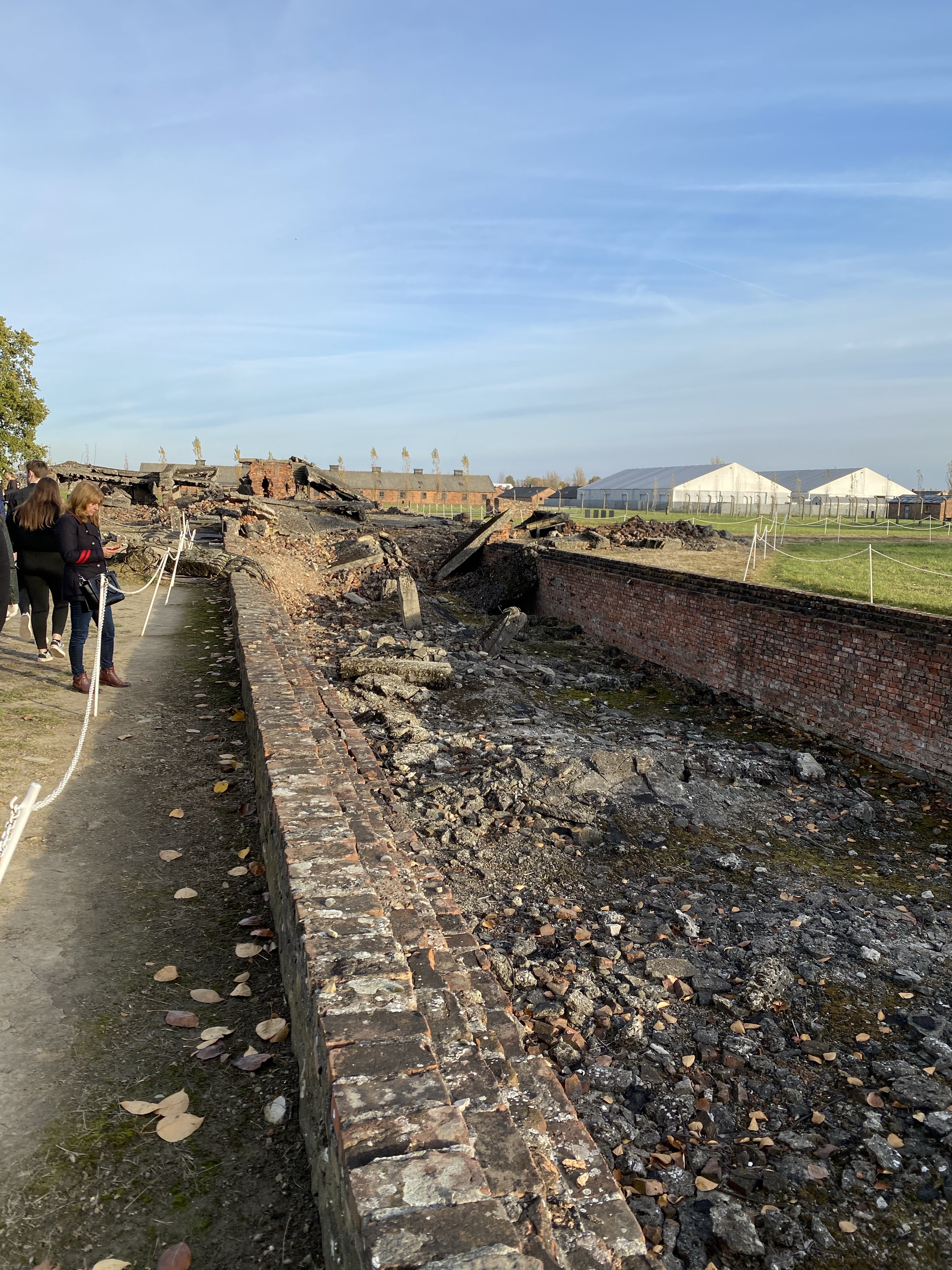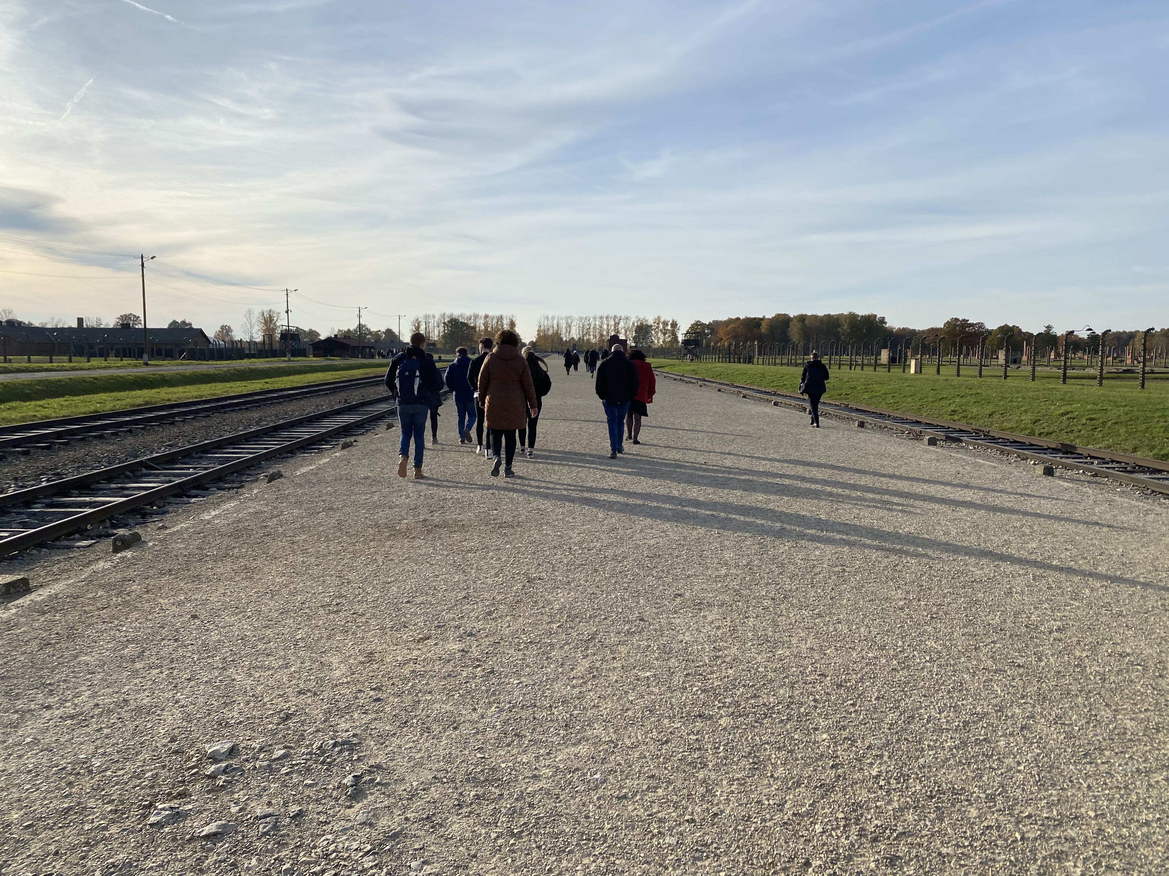 Bij het tweede kamp aangekomen, moet ik direct denken aan elke film waarin Auschwitz aan bod komt of plaatjes die je ziet. Je komt binnen via de bekende poort waarbij de rails zich splitst. Hier hadden we minder museum om te zien en meer verhalen bij wat je ziet. Ook mochten we de headset wegleggen en begon onze guide meer te vertellen. Het werd naar mijn idee meer een verhaal wat ze vertelde. Met die hoofdtelefoons is het alleen maar zenden zonder contact te maken. Je vraagt je misschien af wat voor een sfeer er hangt? Ik geef hier een lekker nietszeggend antwoord op, want dat is moeilijk te beschrijven. Enerzijds weten wij (ervan uitgaande dat iedereen iets weet) best wel wat over wat zich hier heeft afgespeeld. Wanneer je er dan uiteindelijk loopt krijg je wel meer besef over dat het allemaal ook echt gebeurd is. Natuurlijk weet je dit al, maar als je hier loopt komt het echt binnen. Deze ervaring voeg je samen met bekende beelden en het verhaal wat verteld wordt. Dat maakt wel indruk.