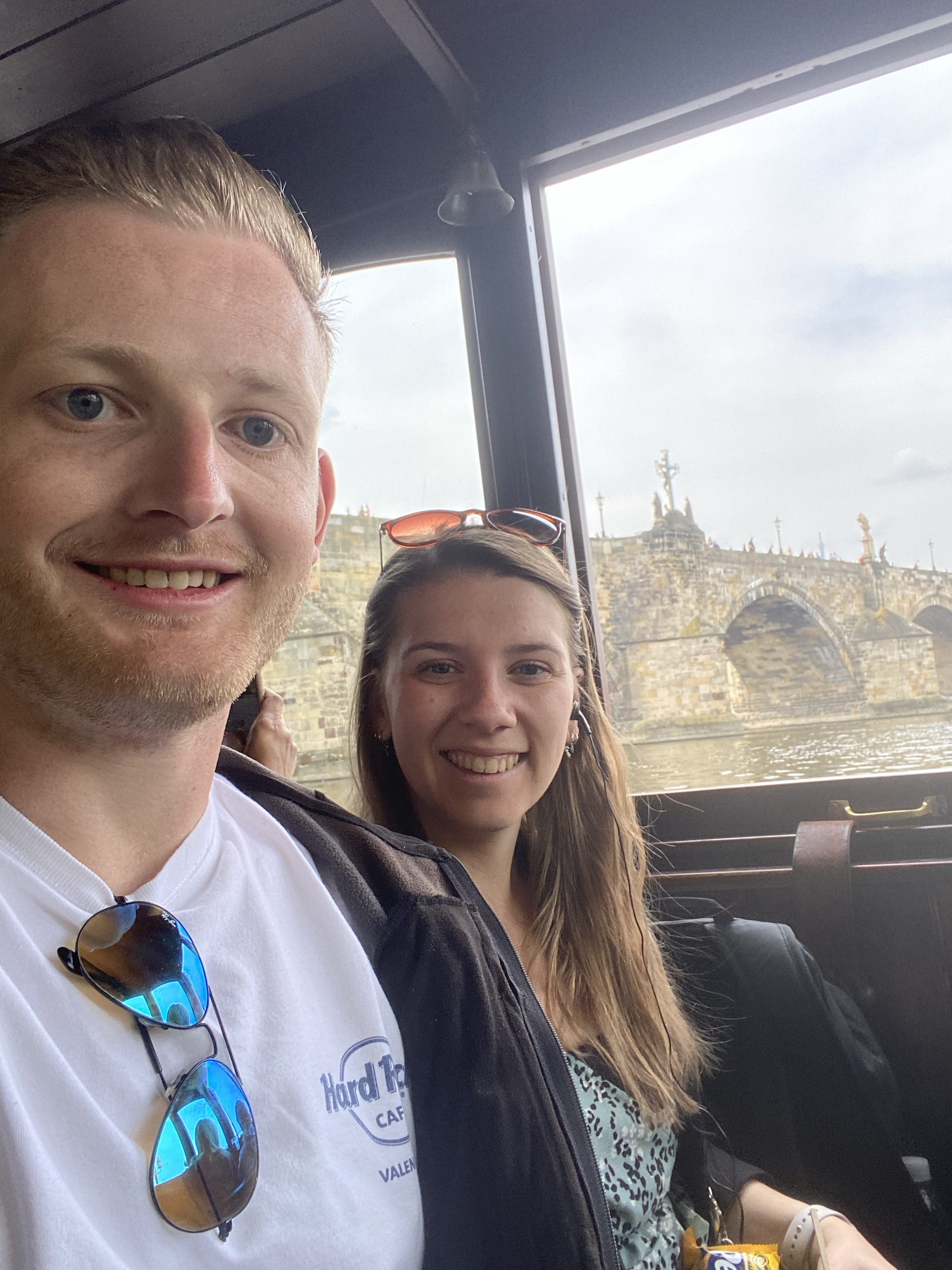 Voor de middag hadden we in de planning om een boottour over de rivier te nemen. Op internet vonden we Venice Boat tours. Deze waren we gisteren ook al tegenkomen. Vlak voor Charles bridge staat het namelijk vol met mannen in matrozenpakjes. Zij bieden een boottocht met gratis drankje en ijsje/gingerbread aan. Gingerbread zou je kunnen vergelijken met ontbijtkoek. De tocht zou zo’n 45 minuten duren. Eenmaal op het water snapten wij wel hoe ze de tijd vol krijgen. Jeetje wat vaart deze boot langzaam… De boot vaart vooral rondom Charles bridge. Je gaat dus niet heel ver de rivier op. Dit was ergens wel jammer. Wel kregen we goede informatie van de gratis audio guide. Dit kon ik mooi gebruiken voor mijn blog van gisteren 😜. De tour op zichzelf was wel leuk, maar niet onwijs bijzonder.
