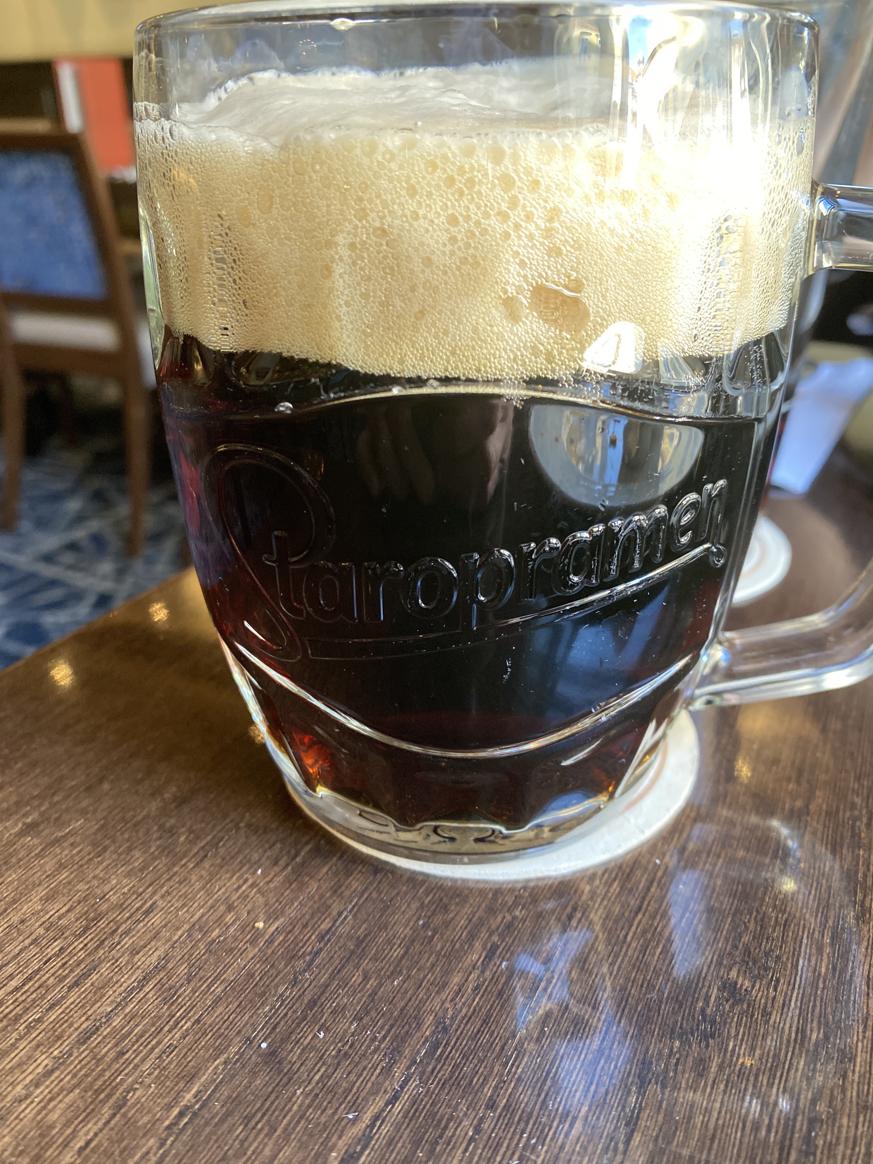 Dan was het voor Robin nu eindelijk tijd om echt te gaan shoppen. Ze ging ervan uit binnen één uur weer terug te zijn. Dit tot ze een extra straat vond waar nog meer winkels zijn. Geeft mij mooi de tijd om mijn blog te schrijven. Om half 6 hadden we gereserveerd bij Hard Rock café. Dit kan natuurlijk niet ontbreken bij een bezoek aan een grote stad. Zoals ik van Hard Rock gewend ben, heb hier heerlijk gegeten. Dit samen met een nieuw Tsjechisch bier (staropramem). Ditmaal een ongefilterd en donker (stout) bier. Dit werd uiteraard weer geserveerd met een flinke schuimkraag. Dit is blijkbaar waar de Tsjechen van houden. Over bier gesproken. Dit is sowieso wel echt een ding in Tsjechië. Overal vind je bier en zie je mensen met bier lopen. Toeristen doen hier trouwens graag aan mee. We hebben voornamelijk veel groepen Engelse toeristen gehoord. Als je wel eens dronken Engelsen dan snap je goed dat deze niet te missen zijn. Zij gaan zich zo overdreven dom en luidruchtig gedragen. Wij liepen vandaag tussen 10 en 11 door de straten van Praag. Wij zagen toen de eerste mensen al aan het bier. Waar je zin in hebt.