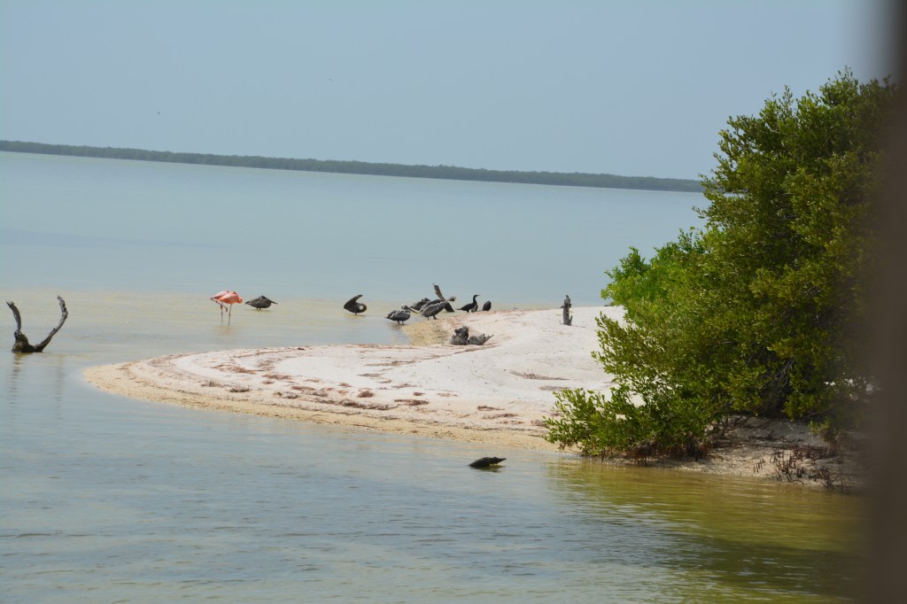 Na ongeveer 20 minuten rijden, kwamen we bij onze boot. We moesten allemaal (we zaten met 6 anderen) een zwemvest aan en vertrokken naar het eerste eiland. Het is heerlijk zo’n bootrit. We voeren tegen de golven in, dus ook nu hobbelde de boot wat op en neer. Bij het eerste eiland aangekomen stond een steiger. We kregen 15 minuten van de boot om het eiland te bekijken. Op het eiland leeft een variëteit aan vogels. Waaronder flamingo’s (2 lieten zichzelf zien), pelikanen (wij vonden er 1) en nog een soort die overal rondvloog, maar deze kenden wij niet. Leuk om even gezien te hebben.