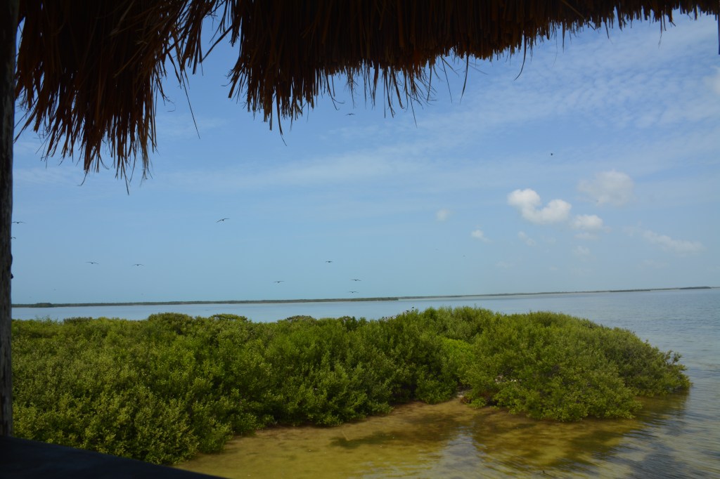 Het derde eiland stelde niet zoveel voor. We wisten ook niet goed wat we hier moesten. Weer terug op Holbox, zijn we teruggegaan naar de camping. Hebben we ons even gedoucht. Althans, gedoucht. Als je nodig moet plassen komt het water er harder uit zeg maar. Gelukkig waaide het douche gordijn ook niet de hele tijd tegen je aan en had je lekker te ruimte. Toch voelden wij ons even iets frisser. Tijd om nog wat te gaan eten. Dit deden we wederom bij hetzelfde restaurant. Het werd al later en we wilden nog graag een activiteit doen. Helemaal terug naar het centrum vonden we geen optie. Allebei maar weer een pizza en vooraf goed gesmeerd met deet!
