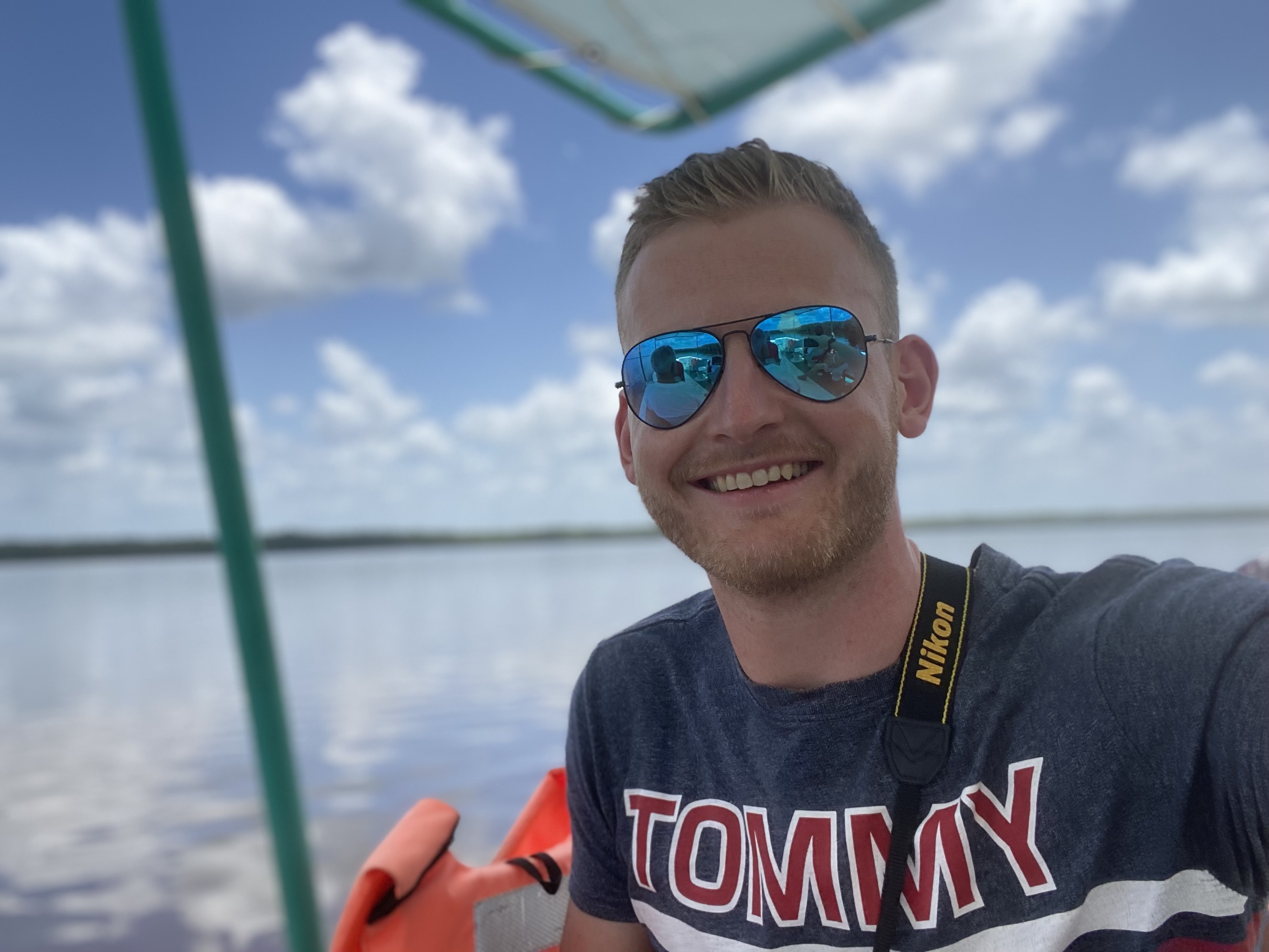 Via de app maps.me had ik de route gepland. In deze app download je een kaart van een gebied, zodat je offline met je navigatie alles kan doen. Via de app zagen we dat de reis ongeveer 1 uur en 15 minuten zou duren. Dit werd uiteindelijk 3 uur. Deze bus gaat namelijk niet rechtstreeks naar Celestun, maar als een stadsbus van plaats naar plaats. De bus had wel airco en aardige stoelen, dus was het prima te doen. Na een tijd reizen kwamen we aan bij het meer naast Celestun. Hier wilden we een boot tour doen. Een boot kost ongeveer 120 euro. Nu kun je dit met z’n tweeën, maar je kan ook wachten op andere mensen en de kosten delen. Je betaalt namelijk voor de boot. Uiteindelijk kwam er een groepje van 4 oudere Mexicanen aan die wel een boot wilden delen met ons. Hierdoor kostte het uiteindelijk 400 pesos per persoon.