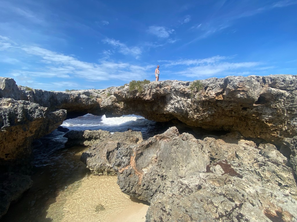 Er gaat één hoofdweg over het eiland. Hiermee rijd je het halve eiland rond. De andere helft is voornamelijk offroad en alleen (goed) te bereiken met een jeep. Aan de hoofdweg zitten alle belangrijke punten die je gezien moet hebben. Zo reden we aan de westkust langs vele stranden (hier morgen meer over). Onze eerste stop was bij punta Sur. Dit is het meest zuidelijke punt van het eiland. We stopten eigenlijk om even een kijkje te nemen vanuit de bar die er lag. In de bar zat een (ouder) Amerikaans stel. De vrouw zocht meteen contact en gebaarde om te komen zitten. Prima joh. Wij raakten zo aan de praat met Charly en Chrissie. Beiden waren al gepensioneerd en genoten van tripjes naar dit eiland. We bestelden wat te eten en drinken, terwijl we muziek van Bob Marley luisterden, en hadden leuke gesprekken met deze mensen. Ze waren onwijs vriendelijk en toonden oprecht interesse. Zo wilden ze graag weten waar Duiven lag, aangezien ze alleen Amsterdam kenden. Wij gaven aan dat het meer in het oosten was. ‘So you’re kind off hillbillies.’ Dit laatste verwijst vaak naar mensen van het platteland (boeren). Nou… dat niet helemaal.