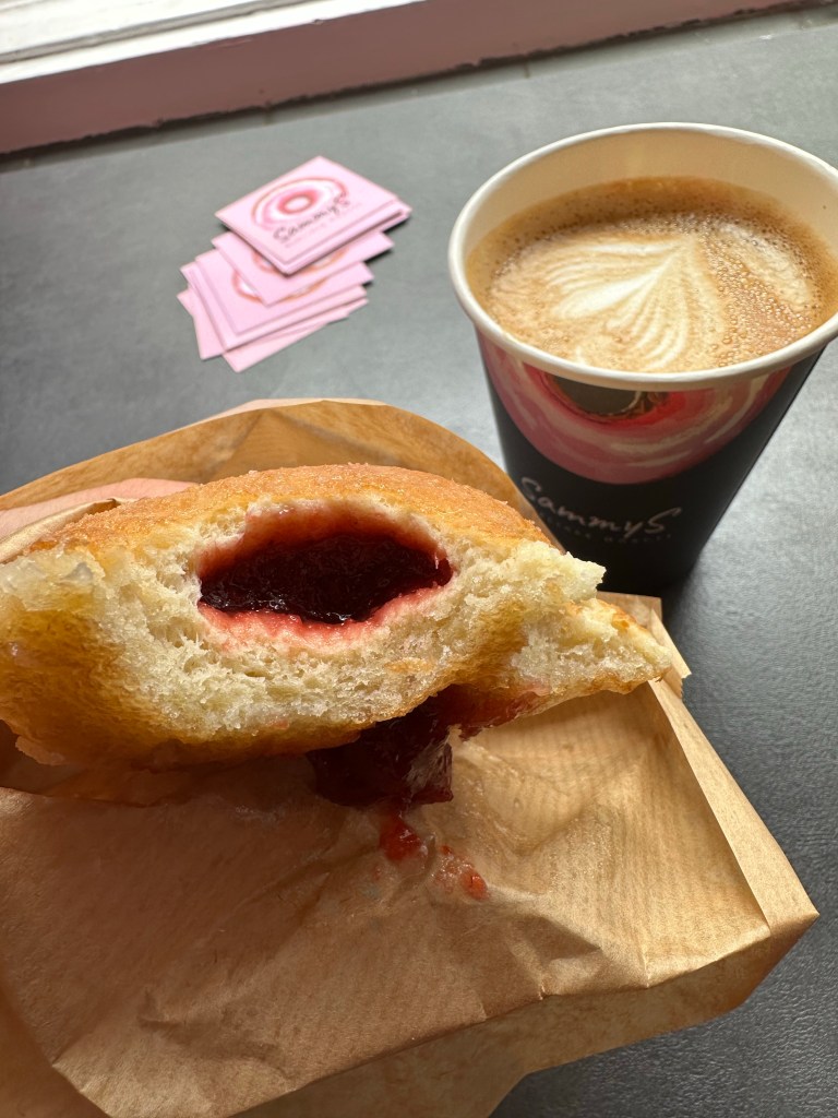 Uiteindelijk kwam ik aan bij mijn eerste bestemming: een café waar ze traditionele pfankuchen verkopen. Nee, dit waren geen pannenkoeken, maar Berliner bollen. In Berlijn worden deze echter pfankuchen (normaal pannenkoeken) genoemd. Dit deed mij denken aan de uitspraak van Kennedy toen hij in Berlijn was. “Ich bin ein Berliner.” Hij bedoelde hiermee natuurlijk dat hij een inwoner van Berlijn is. Je kunt het echter ook lezen als dat hij een Berlijnse bol is. In de rest van Duitsland wordt de lekkernij namelijk Berliner genoemd. Ik heb nog opgezocht of de zin taalkundig klopt en dit is het geval. Zou anders natuurlijk wel een blundertje zijn. Terug naar het café. Ze verkopen de klassieke (met fruit vulling) of speciale. Van beiden koos ik er 1. De klassieke met aardbei en de speciale was iets met karamel. De smaak is vergelijkbaar met dat van een donut, alleen is dit een bol. Ik heb niet het idee dat je in Berlijn betere bollen eet dan een goede Nederlandse bakker. Uiteindelijk is het allemaal gewoon veel suiker.