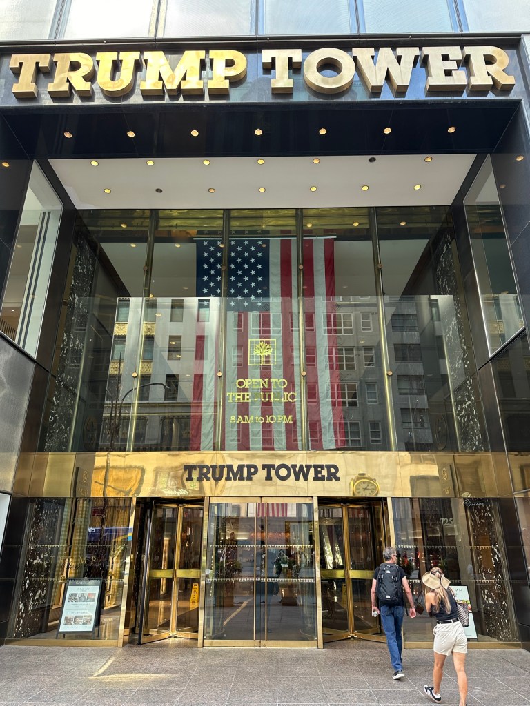 Op 7th Avenue stapten we uit de metro. Vanuit daar was het een klein stukje lopen naar de Trump tower. Wij hebben niet zozeer iets met Trump, maar meer hoe de toren is gebouwd. Het atrium van de toren is openbaar en daar kun je rondlopen, iets eten/drinken of naar een Trump fanshop gaan. Verder is er in het gebouw niet veel te beleven. Bij het naar buiten gaan werden we nog wel even getipt door de portier. “I shouldn’t go right if I were you.” Stom dacht ik nog, aangezien wij naar rechts moeten. Toen we vroegen waarom niet, zei hij: “Tiffany (en Co) is over there.”