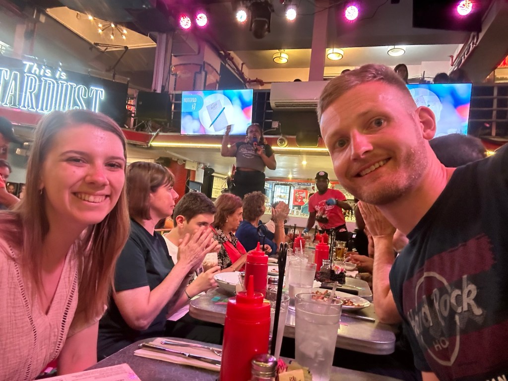 Na de lunch zijn we teruggegaan naar het hotel en pakten we wat rust. We hebben ons opgefrist en zijn daarna weer terug naar het centrum gegaan. We hadden nog één bestemming waar we (in de eerste instantie Robin) echt naartoe wilden. Deze avond eten wij bij Stardust. Wij wilden hier niet naartoe vanwege het eten, maar vanwege de zingende serveersters tijdens het eten. Daar aangekomen stond er een lange rij; vaak betekent dat iets goeds. We twijfelden of we hier wilden wachten, maar besloten maar te gaan staan. Na ongeveer 15-20 minuten zochten ze een tweetal en konden wij versneld naar binnen. Het eten was uiteindelijk prima, niks speciaals. Maar de hele ervaring was erg leuks. Hier krijg je een typisch Amerikaans gevoel van. Filmpjes vind je in mijn verhaal (Facebook/insta).