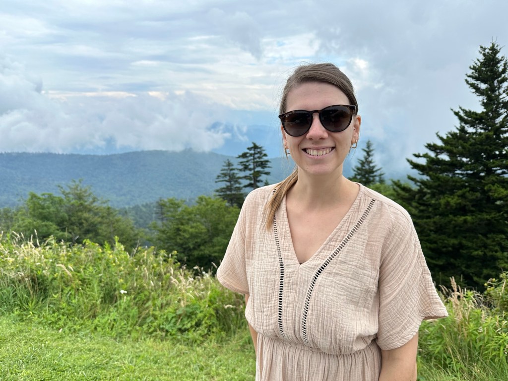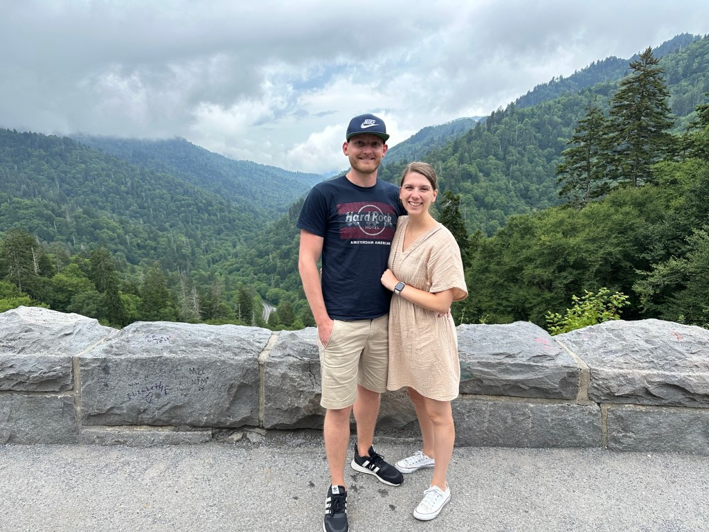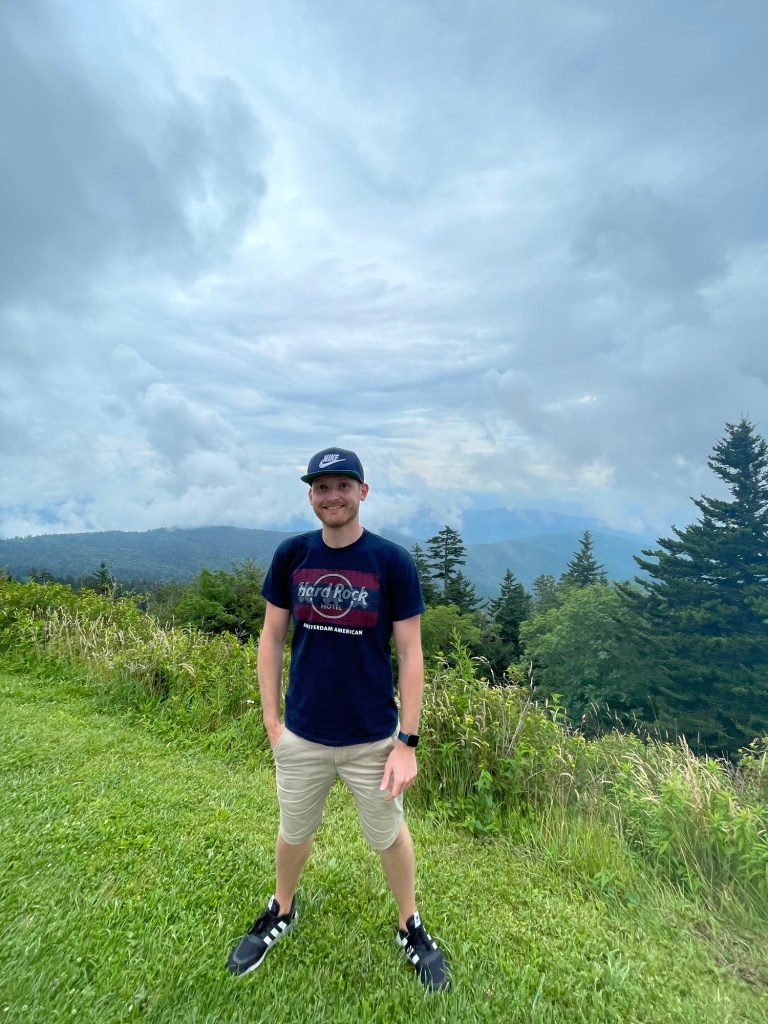 Na een nacht slapen zijn we de volgende dag als eerst onze was gaan doen. In de middag konden we vervolgens met de auto naar de Smoky Mountains. Ik had gezocht op een uitkijkpunt welke op 55 minuten rijden van ons hotel lag. Onderweg hebben we op meerdere plaatsen een stop gemaakt om te genieten van het mooie landschap. De Smoky Mountains dankt zijn naam aan de nevel die rond de bergtoppen zweven. Na ongeveer 45 minuten rijden waren wij zo hoog dat je tussen de bomen door alleen maar wit zag. Het leek net alsof wij tussen de wolken reden. Uiteindelijk kwamen we uit bij Clingmans dome. Op een hoogte van 2025m is dit het hoogste punt in het gebergte.