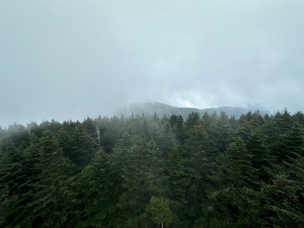 Na de auto geparkeerd te hebben, was het nog een stukje lopen naar boven toe. De route was slechts 0,5 mijl (ongeveer 800m). Normaal gesproken is dit niet ver. Maar met de steile helling die wij opliepen, was dit toch wel zwaar. Ik gebruik voor dit soort momenten vaak de tactiek van gewoon zo snel mogelijk omhoog lopen. Maak jezelf even boos en voor je het weet ben je boven en kun je rusten. Robin kostte dit wat meer moeite. Zuchtend en steunend liep ze naar boven. Ondertussen werd ze aangemoedigd door een passerende Amerikaan die naar beneden liep: “It’s worth it, it’s so worth it.” En weer door! Eenmaal boven aangekomen liepen we de toren op en had je een mooi uitzicht. Was het de moeite waard? Zeker! Zou het leuk zijn geweest als het iets minder bewolkt was, zodat je meer kon zien? Zeker! Als je op Google zoekt op clingmans dome, snap je dat we nu maar weinig gezien hebben. Toch is dit ook een fenomeen! Kijk hier ook een filmpje.