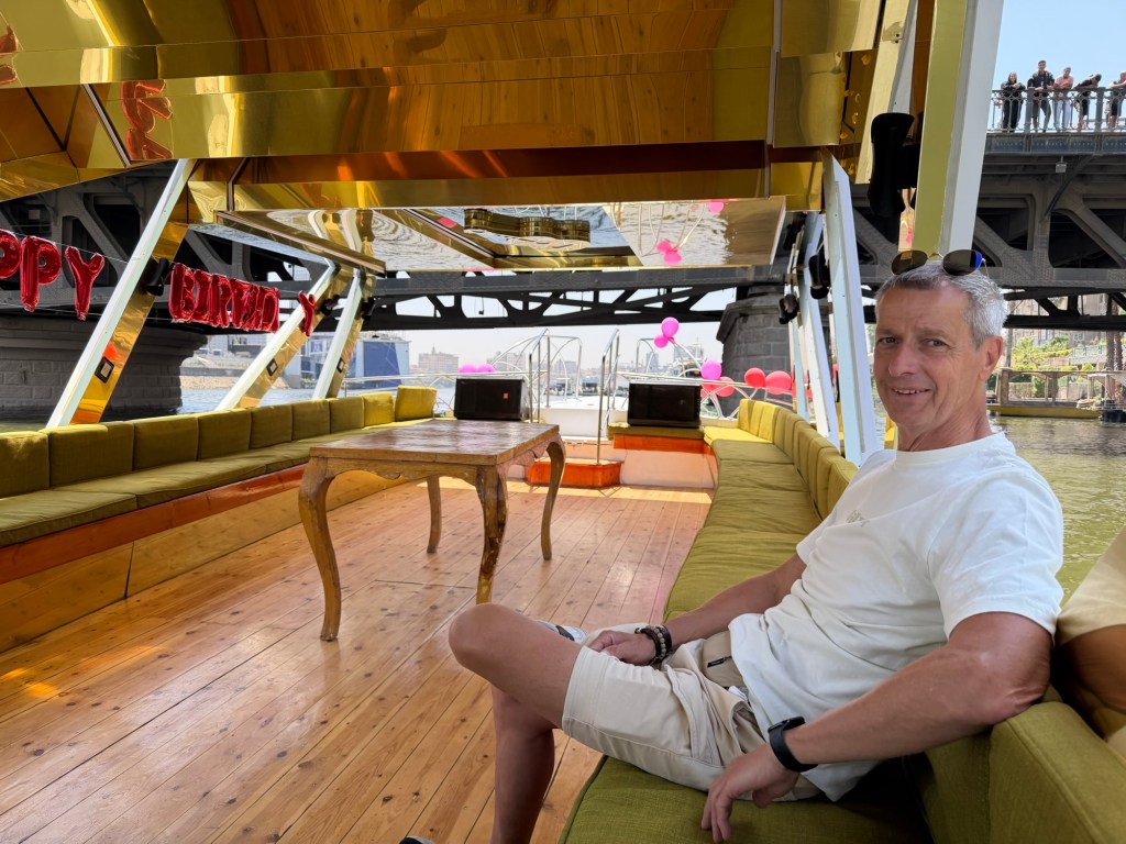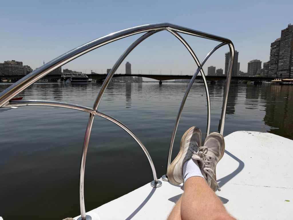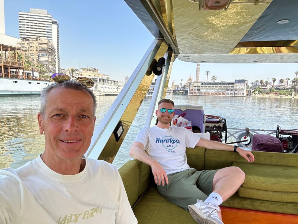 Na ons ontbijt zijn we weer naar Zamalek gelopen; het eiland midden in de Nijl. Gisterenavond hebben we een boottocht overgeslagen, dus nu wilden we dit alsnog doen. Belangrijk bij het regelen van een boot is onderhandelen. Al snel vonden we een “kapitein”. Hij wilde ons zijn fantastische boot laten zien. Hiermee konden we voor slechts 1200 EGP een tochtje maken van een uur. Ik bood hem 400. Nee, dat kon echt niet. Nouja, dan zijn we snel uit onderhandeld. Terwijl wij wegliepen probeerde hij ons over te halen. Nee, we pasten hiervoor. Deze boot is te groot voor ons. Oké meneer, 1000? Nee, 400 is mijn laagste prijs. Toen we weer boven waren, kwam hij ons nog snel achterna. 500?! Wij bedankten, waarop hij toch hapte. Even als check: 400 EGP voor 2 personen en 60 minuten? Ja, ja, dat was allemaal prima. Toch had ik een dubbel gevoel. Of ik betaalde alsnog te veel, want dit onderhandelen was te makkelijk. Of we worden later alsnog opgelicht. Uiteindelijk was het een lekker tripje, waarbij we zeker 60 minuten gevaren hebben. Ik heb nog (in hoeverre mogelijk) met de kapitein gekletst, terwijl Freddy lekker lag te zonnen op de boeg. Met een fooi van 50 EGP vonden we het wel goed. Voor een totaal van ongeveer € 7,20 was het best oké.