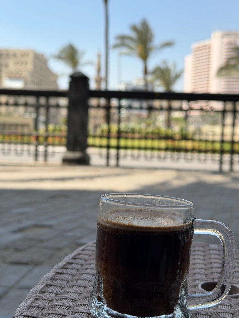 Na dit toetje liepen we verder naar een volgend tentje. Hier hebben we onze eerste dag een kop koffie gedronken, terwijl we uitkeken op het Tahrir Plein. Hier sloten we ook onze trip naar Egypte af. Ik deed lekker mijn schoenen uit, voeten in het zonnetje en nog even ontspannen. Vervolgens liepen we weer terug naar ons hostel voor onze koffers en boekten we een Uber naar het vliegveld. Daarmee komt er ook een einde aan deze reis. Was het de moeite waard? Zeker! Zou ik het anderen aanraden? Zeker! Ik lees op internet veel terug over oplichters. En dat mensen zich onveilig voelen. Heel eerlijk heb ik dit niet zo gehad. Ja, er zijn veel mensen die je willen oplichten. Helaas trapten we er soms nog in. Vooral dat we onvoorzien een te duur kopje koffie dronken. Maar anders dan dat, kom je met je logisch verstand al een heel eind. Mensen zijn vervolgens ook best vriendelijk. Onze taxichauffeur vertelde dit de eerste dag al. Bedank de mensen vriendelijk voor hun diensten (shukran) en ze zullen aardig zijn. Dit hebben we in de meeste gevallen ook gemerkt. Over het algemeen waren de Egyptenaren namelijk gastvrij! Ohja, en die duif. Dat is natuurlijk onzin. Die kies je natuurlijk niet echt zelf uit. Het is wel een populair gerecht in Egypte en wij hebben hem ook echt gegeten.
